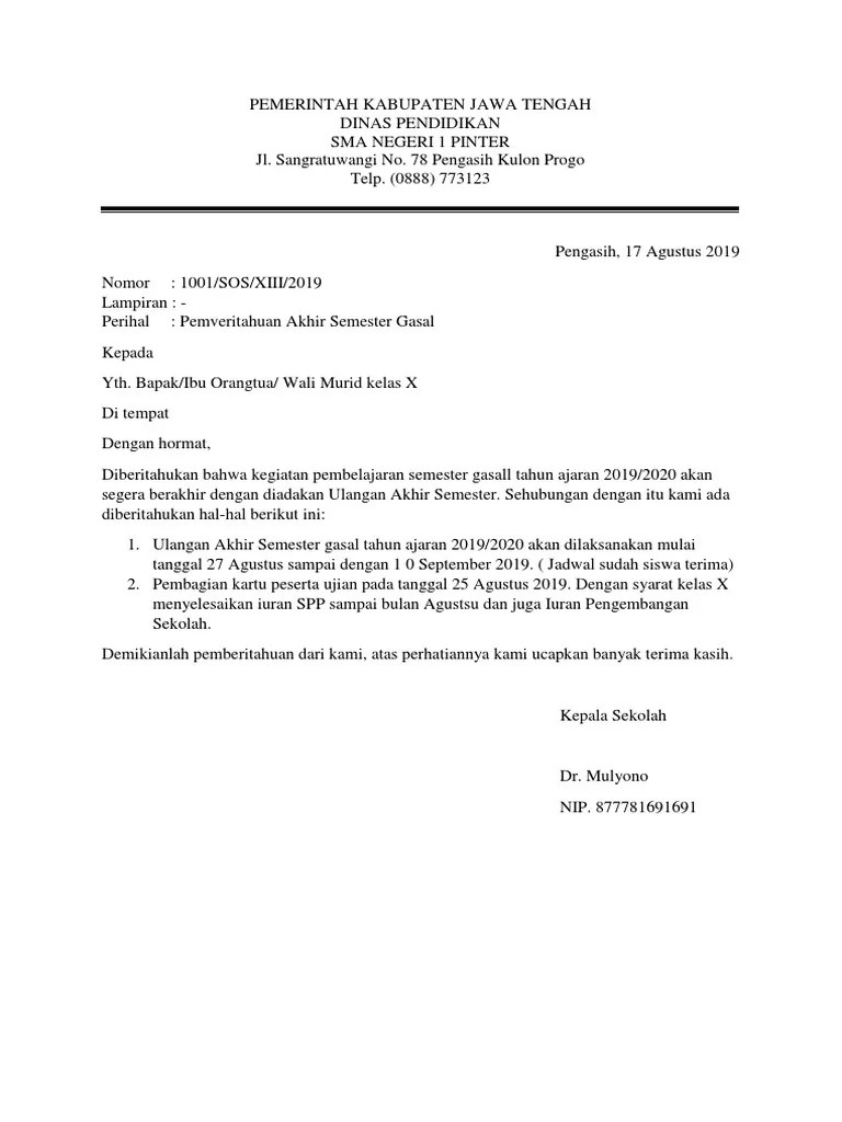 Contoh surat pemberitahuan pembayaran sekolah untuk wali murid surat pemberitahuan sekolah digunakan sebagai sarana informasi tertulis dari pihak sekolah kepada pihak wali murid atau orangtua. Surat pemberitahuan sekolah ini dibuat secara resmi dengan adanya cap stempel sekolah dan tandatangan kepala sekolah. Yang terhormat, bapak/ibu wali murid kelas vii smp n 1 ronggo di tempat dengan hormat, berdasarkan hasil rapat orang tua wali pada tanggal 10 januari 2018 yang lalu, smp n 1 ronggo tahun ajaran 2017/2018 akan mengadakan acara study tour yang wajib diikuti oleh seluruh siswa kelas vii. Semua kegiatan yang ada dalam dunia sekolah, semua bersifat positif semua bersifat pembelajaran. Dec 21, 2019 · contoh surat pemberitahuan hasil rapat wali murid have a graphic associated with the other.contoh surat pemberitahuan hasil rapat wali murid in addition, it will feature a picture of a sort that could be seen in the gallery of contoh surat pemberitahuan hasil rapat wali murid. More images for contoh surat pemberitahuan wali murid » Feb 09, 2021 · 17 contoh surat pemberitahuan kegiatan acara sekolah event paling lengkap suratresmi id. Contoh surat ijin orang tua wali murid anak tidak bisa masuk sekolah karena sakit dadang jsn. The collection that comprising chosen picture and the best among others. Dari kegiatan abc sampai kegiatan xyz, dari kegiatan sebelah timur sampai kegiatan sebelah barat. Dan memang, sebenarnya tidak ada aturan baku untuk membuat surat sejenis ini. Apakah surat pemberitahuan yang ditujukan kepada orangtua? Pungli atau kenang kenangan beredar surat edaran pembelian komputer sdn 2 mulyorejo blora kabar blora.